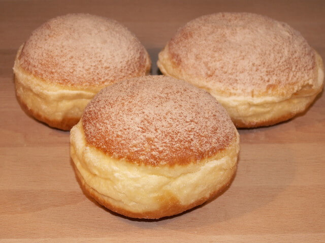 3 Krapfen mit Puderzucker